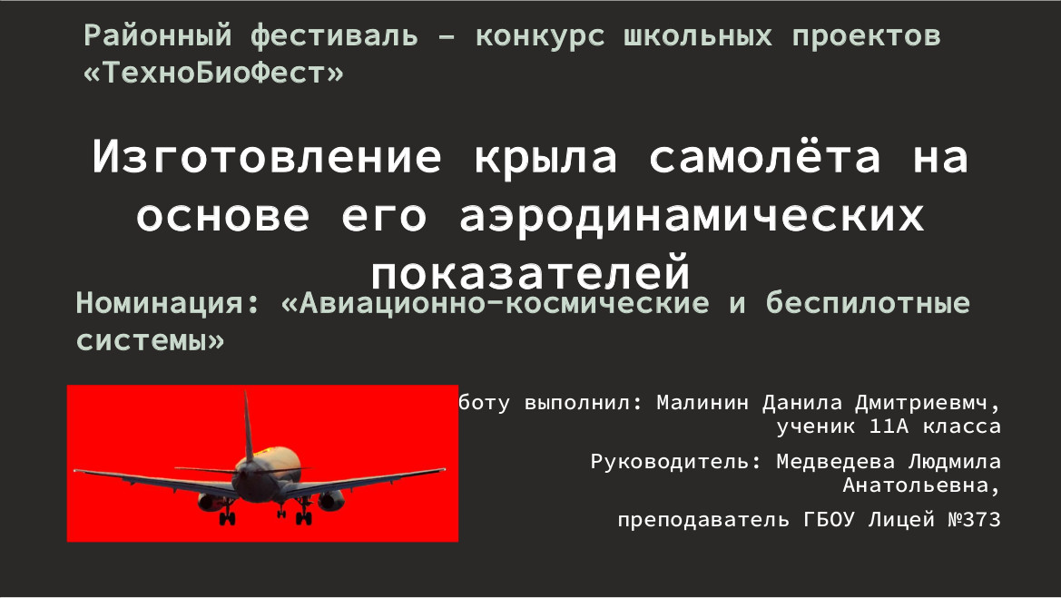 Изготовление крыла самолёта на основе его аэродинамических показателей |