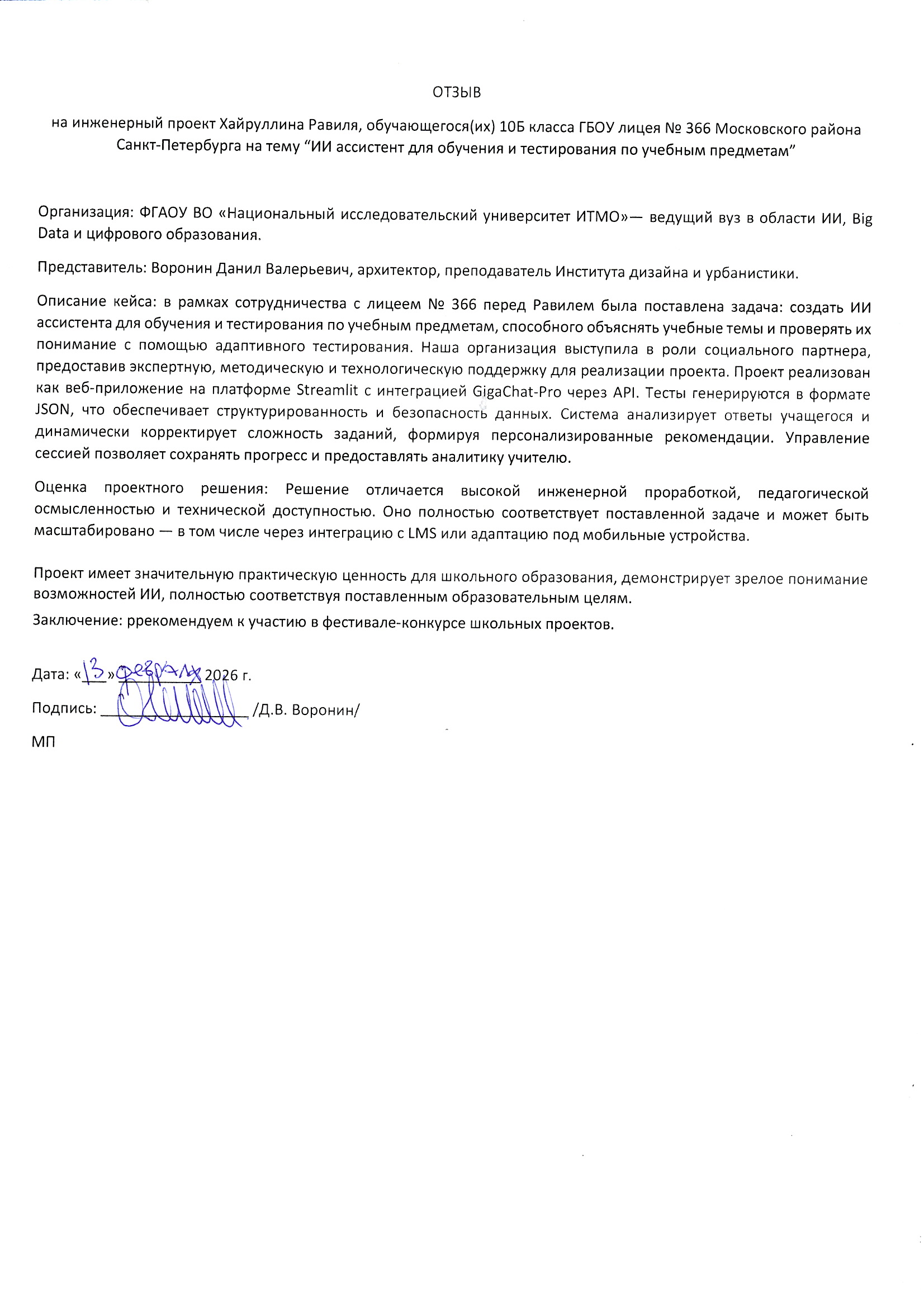 Отзыв "заказчика" |